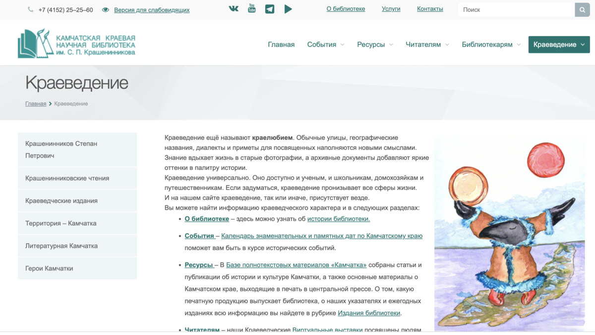 📍Сайт Камчатской краевой научной Библиотеки им. С. П. Крашенинникова